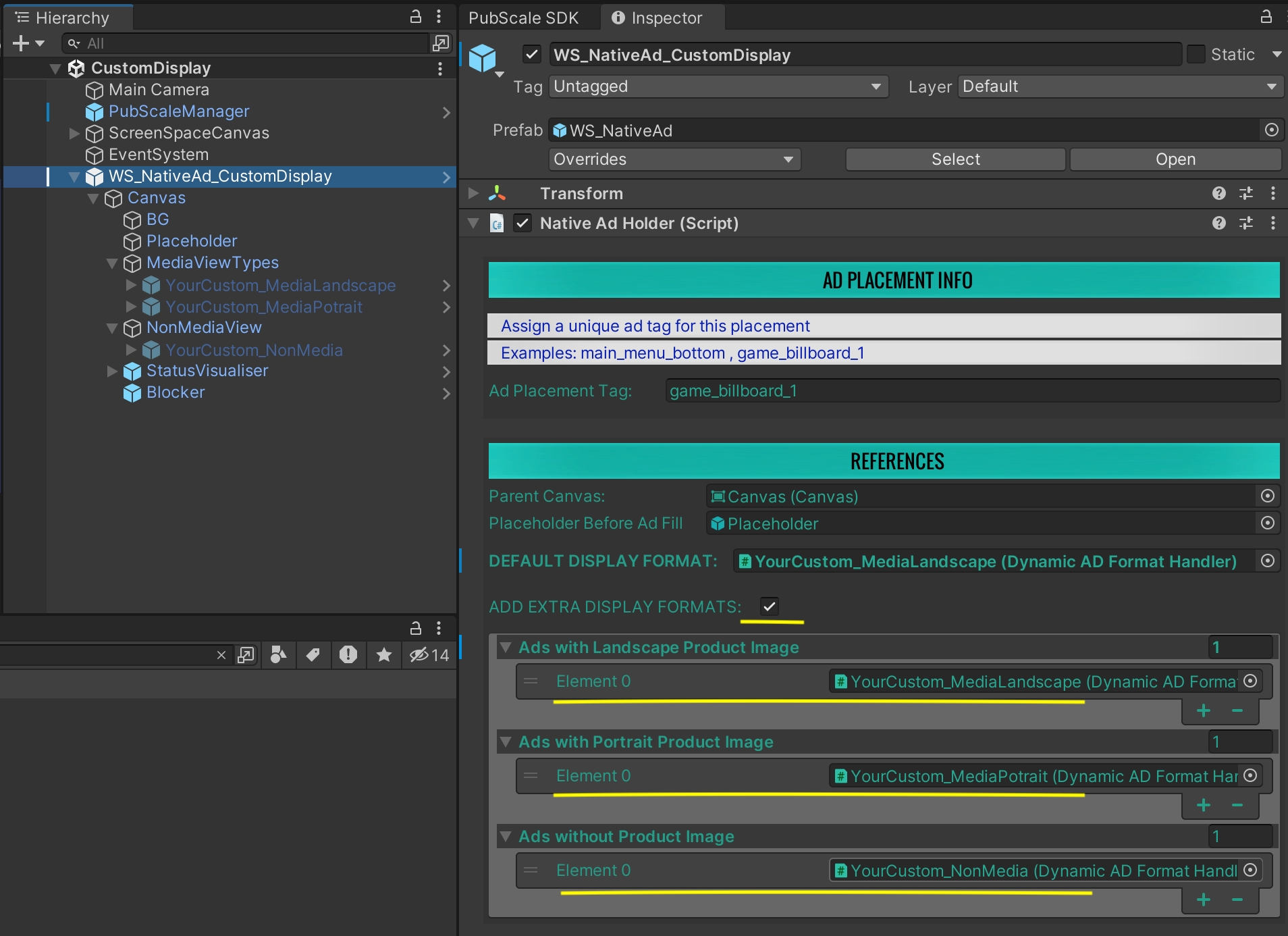 The Display Handler Templates used in the default Ad Prefabs are: