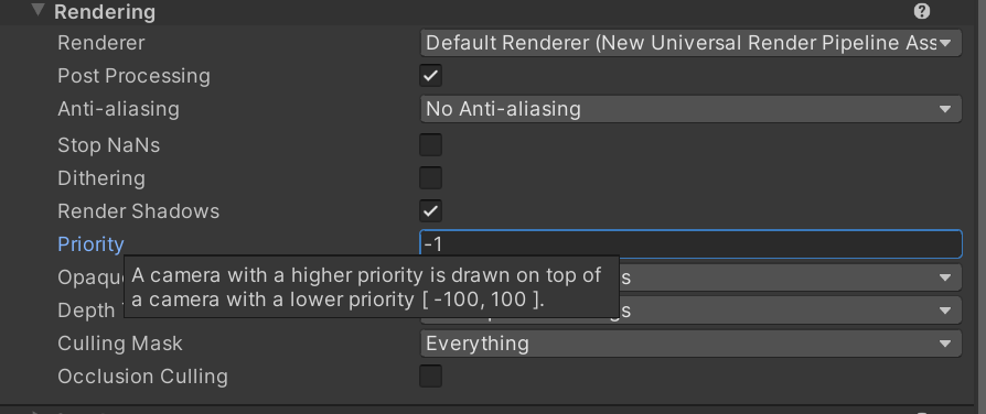 4. If you have multiple camera’s on the scene make sure the camera which is looking toward the ad unit has the highest priority depth value.&#x20;