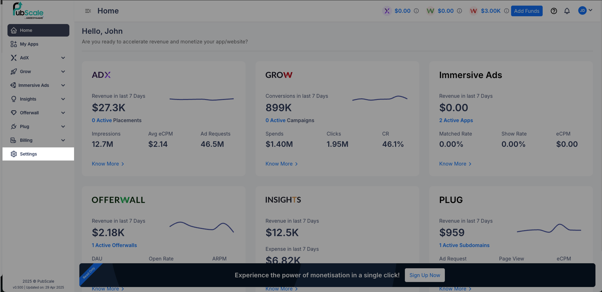 1. Once logged in, you’ll find Settings in the side navigation panel.