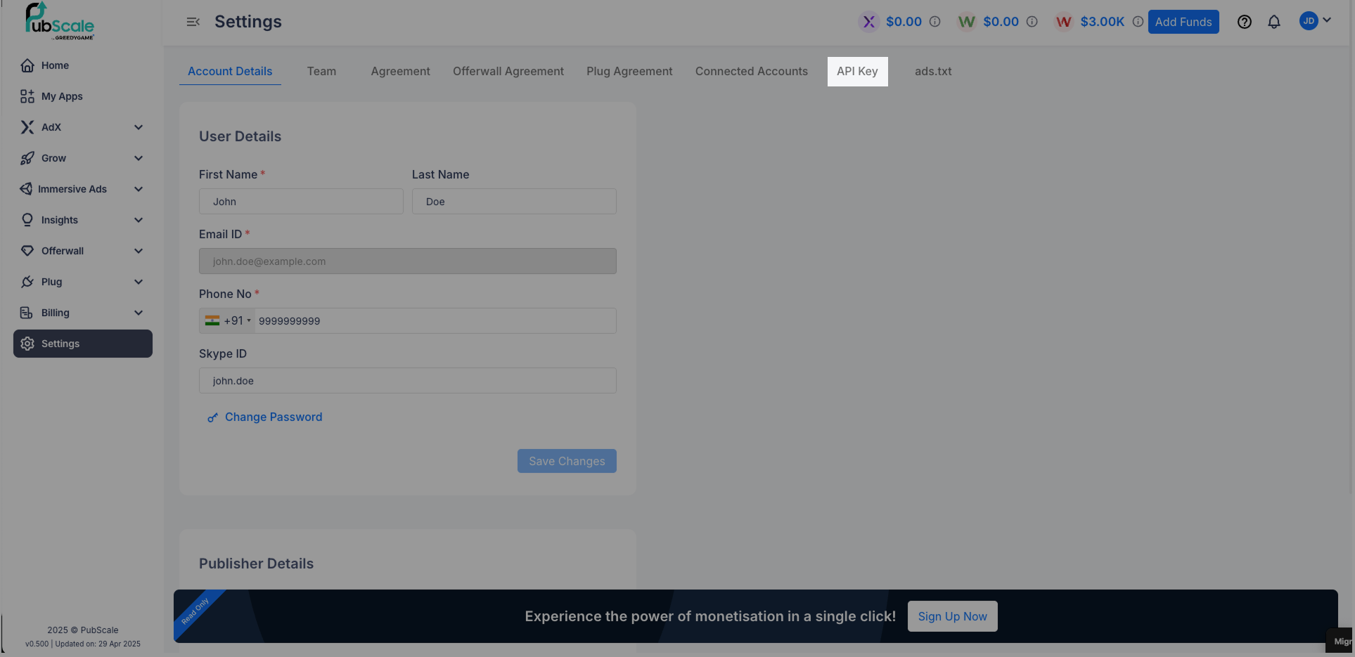 After your account is approved, you can proceed with the following steps to generate your Publisher API Key.