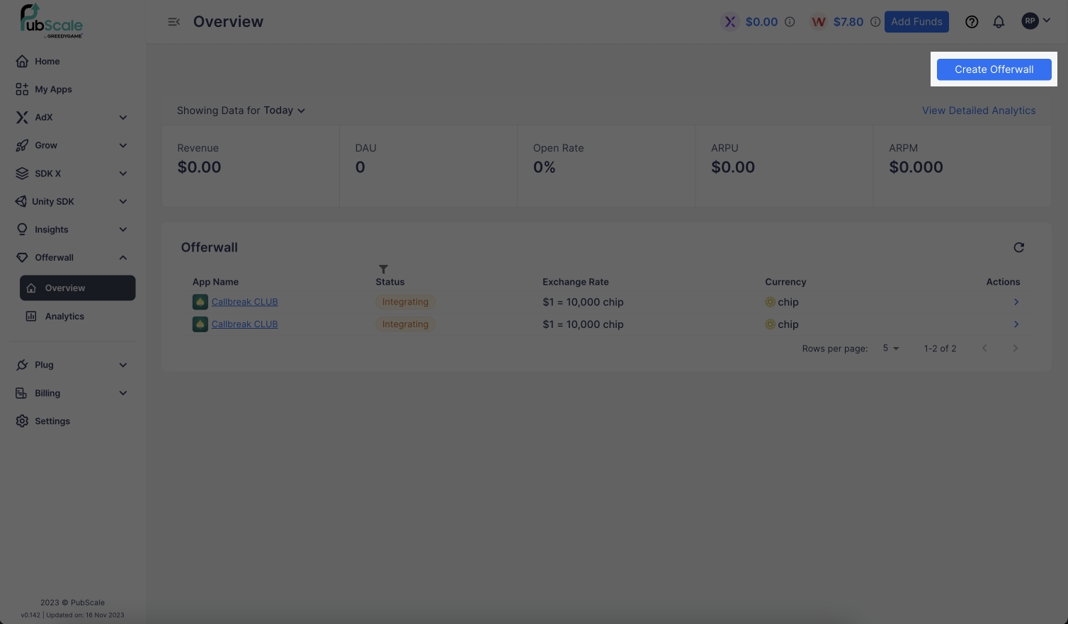 Next, create an Offerwall placement for the app by clicking on the Create Offerwall button and create the offerwall unit by providing the required details and config.